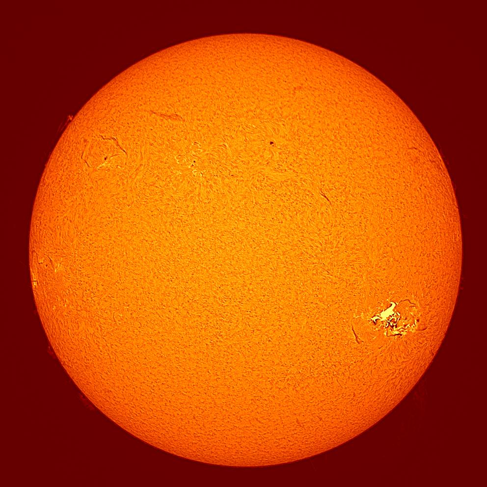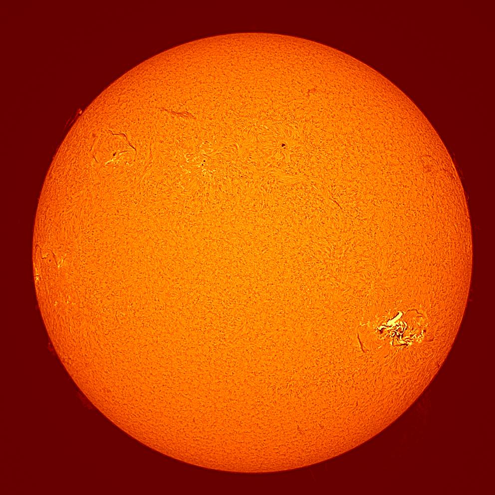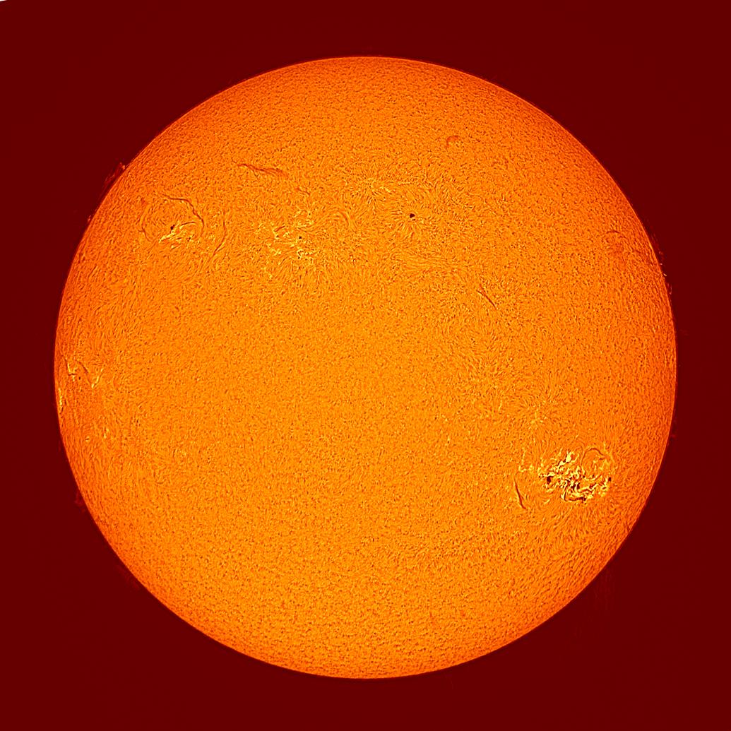 太陽全体像と、全体像からトリミング拡大した画像をご覧ください。