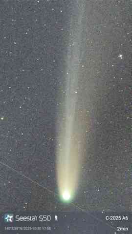 2025/10/28 18:04:21 180秒 SQA55、FL264mm、ASI2600MCP、30sec x 6フレーム(雲の比較的かからなかった6フレームをコンポジット)、調整、南相馬市