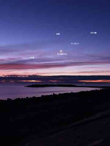 月,惑星,流星,そして朝焼けと美しい写真ですね。