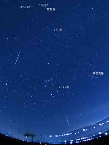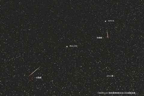 右の流星は放射点の中心から5度程度に位置し、あと少しで停止流星になるところでした。
