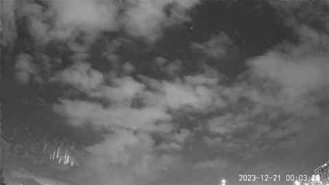 「ふたご座流星群火球」2023/12/14 4:38 ニコンD750 シグマ8㎜f3.5全周魚眼レンズ(f3.5 20 ISO3200)