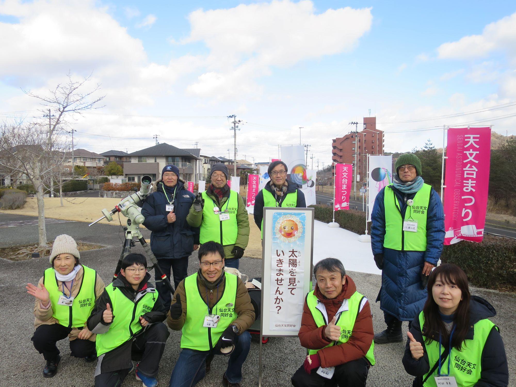 2月3~4日の土日は、恒例の天文台まつりがありました。3日は、9名で4台の望遠鏡を並べ、お客さんを待ちました。しかし、朝から小雪がちらつく天気で太陽観望会開催が危ぶまれましたが、10時半すぎると雲の隙間が広がり始め、隙間からの観望ができるようになりました。午後になってさらに隙間も広がり、1日で70人ほどの家族連れや個人の皆さんに楽しんでいただきました。午後の途中から私は用事で帰宅しました。夜の観望会は大変にぎわって70名ほどが観望されたと聞いております。折しも天高く木星が光り、プレアデス星団やオリオン星雲、飛び入りのISS通過も見られたそうです。