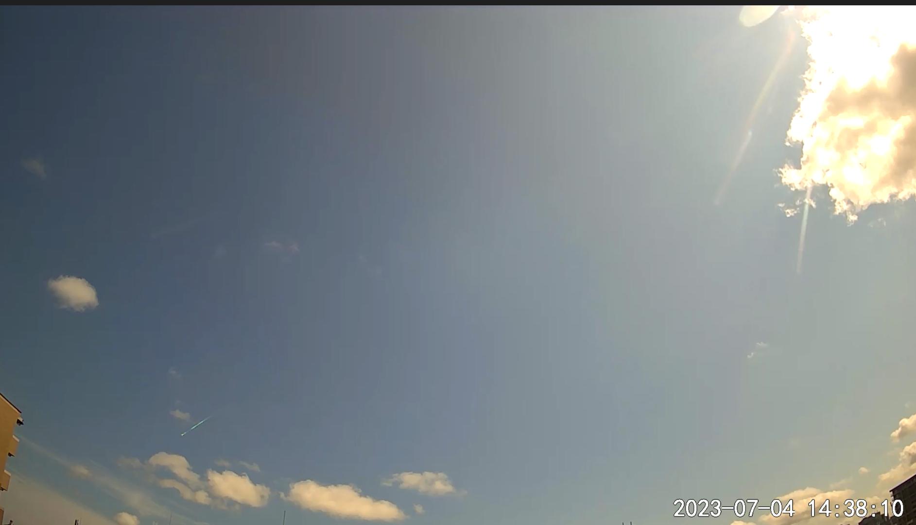 写真は2023年7月4日に出現した昼間火球(画面左下)です。