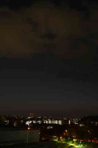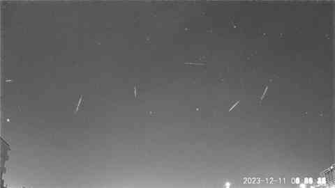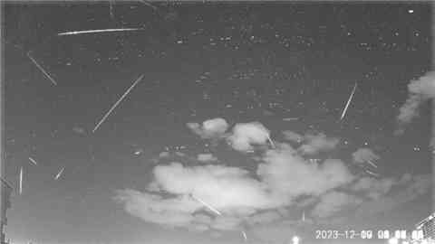 撮影中1秒露出を連続したら、偶然-2等のふたご座流星群が雲の隙間から流れました。