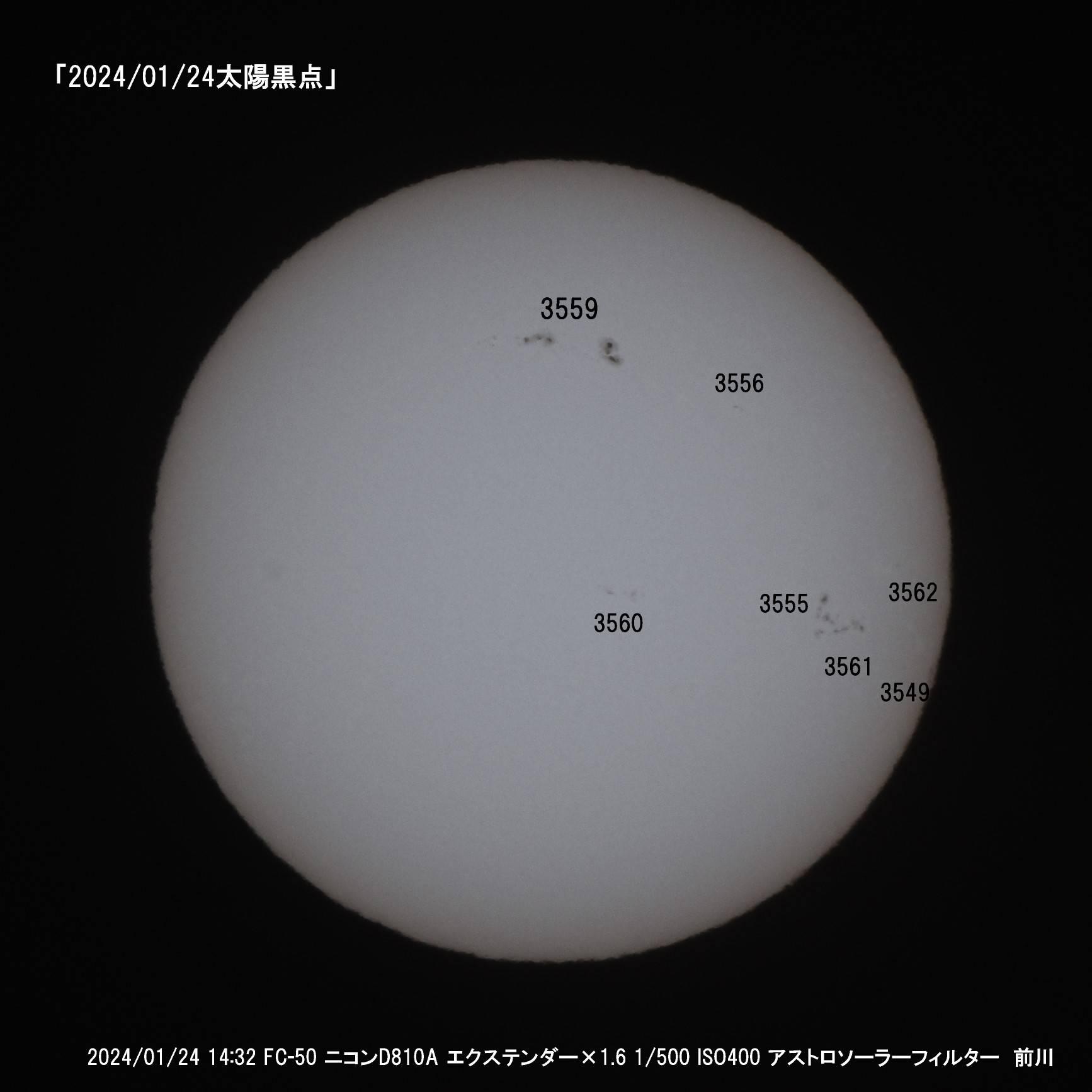 画像では黒点番号3559番です。その黒点群の右端の大きいものは地球を飲み込んでしまうほどの大きさです。