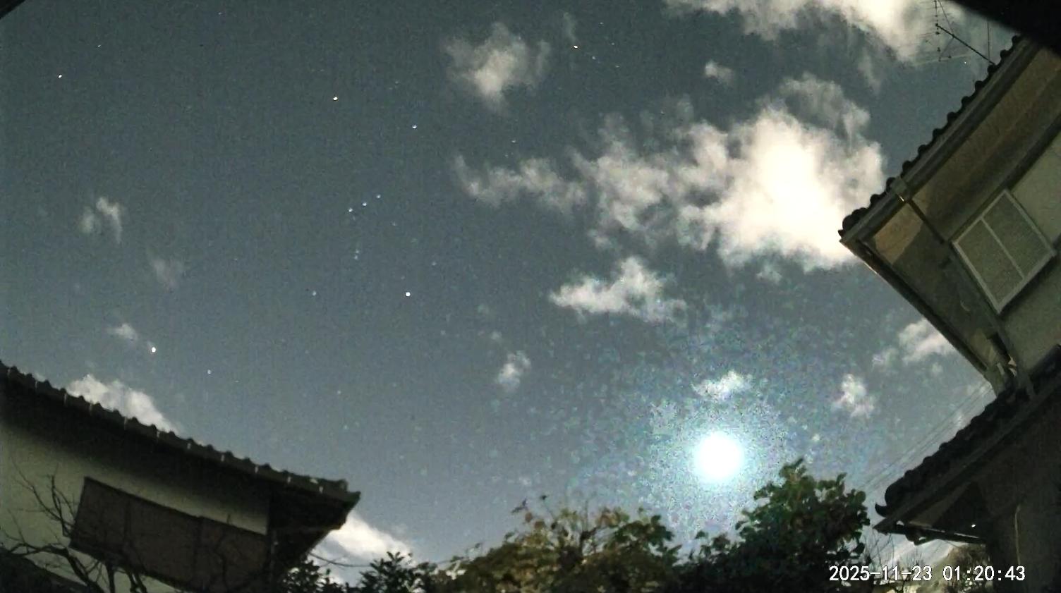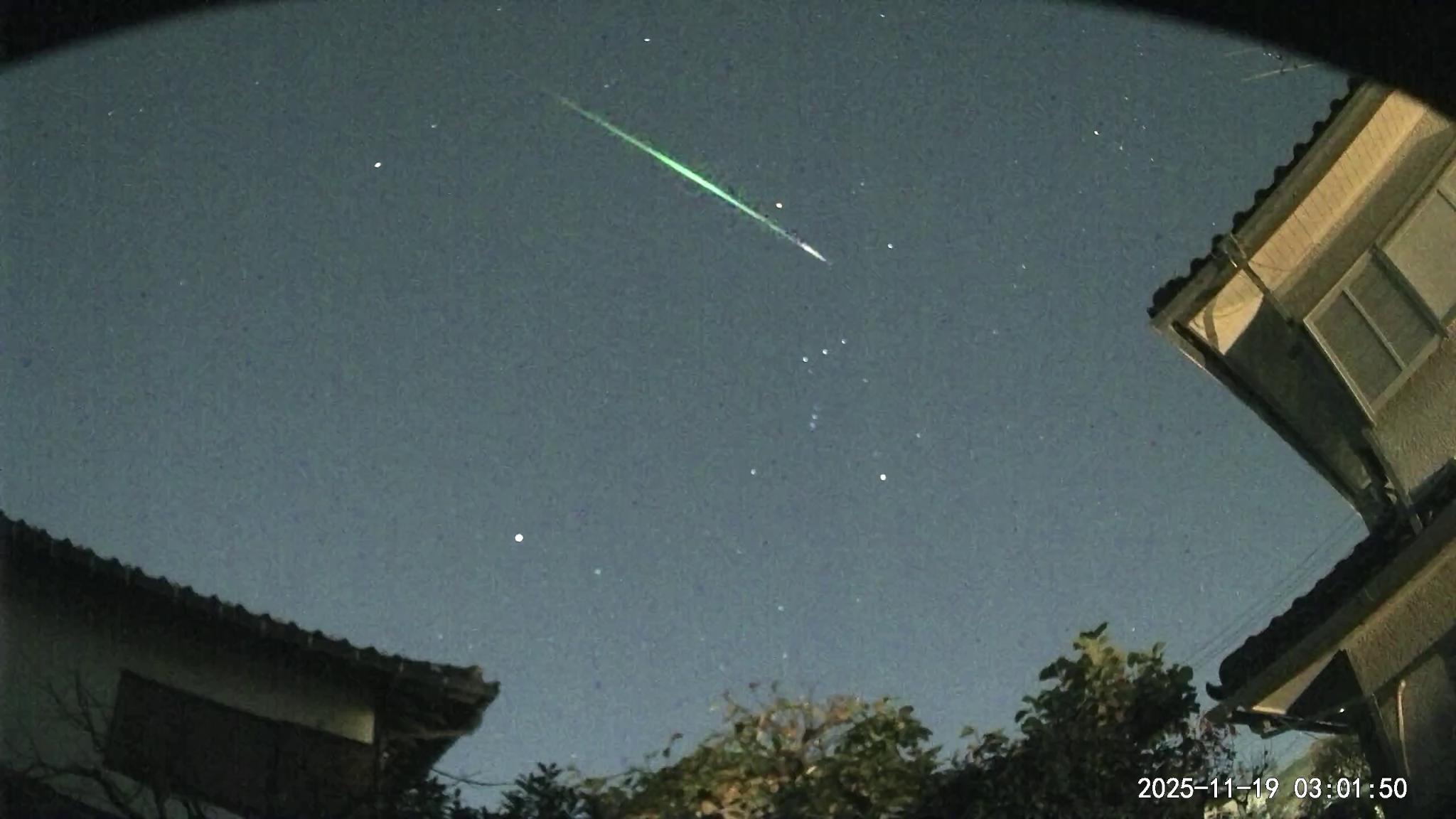 自宅のWYZECAMで、11月19日03:00JST,03:01JSTと連続でしし座流星群の火球が撮影出来ていました。同好会のT田さん情報のおかげです。1つ目の流星は4~5分程度の永続痕が見えていたようです。私のWYZECAMでは数十秒程度でした。