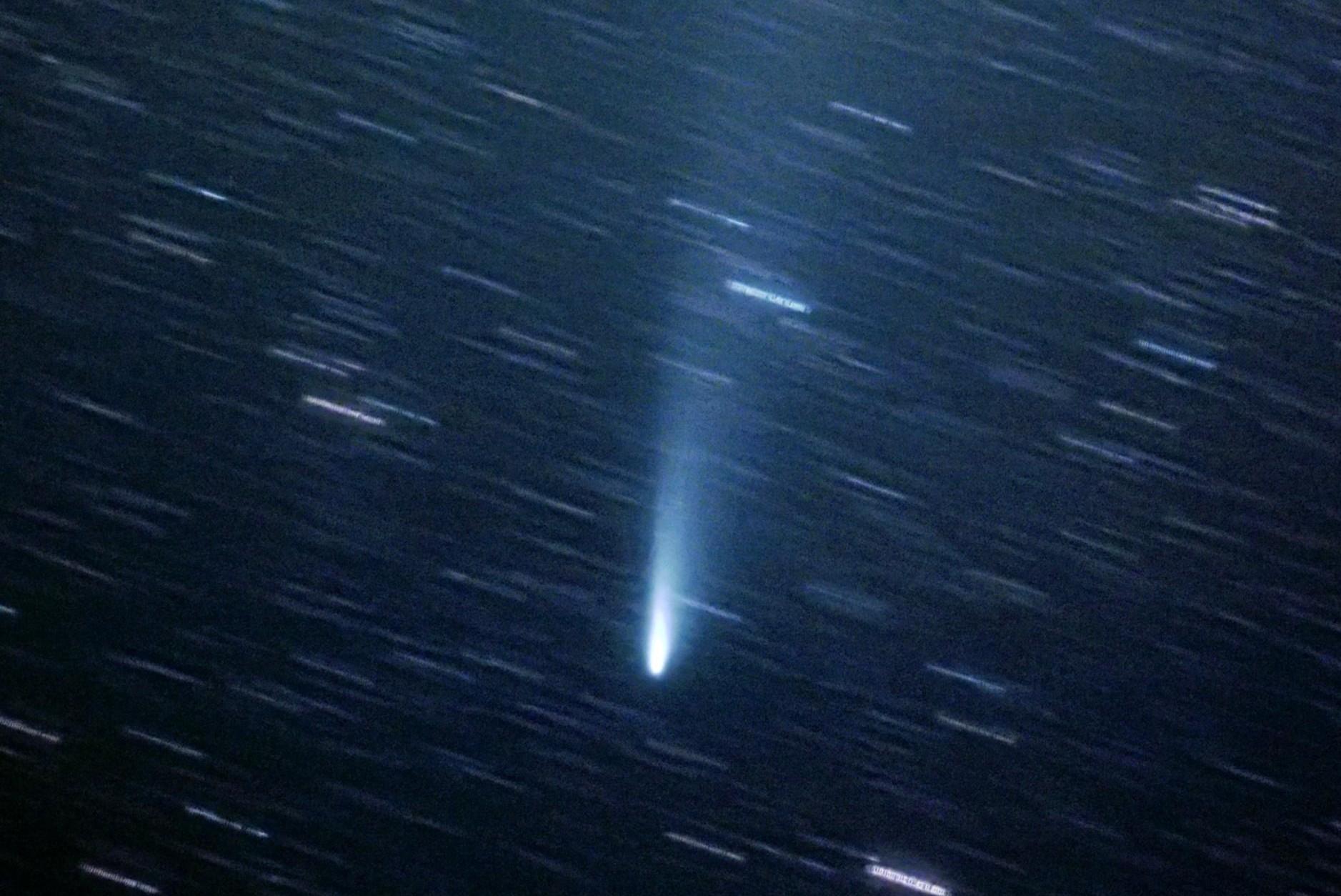 10月8日の近日点通過後に、核が複数に分裂した後の C/2025K1 アトラス彗星。分裂した断片は確認できませんでしたが、光度は10等程度で、まだ彗星らしい尾が見られました。