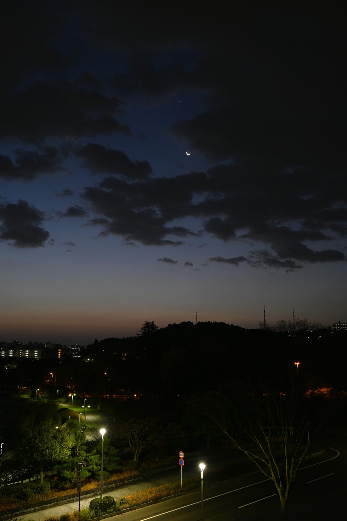 金星と三日月が出るまで何とか天気が持ち、撮影できました。