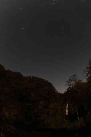 西に傾いた秋の星座と共に紅葉の秋保大滝を撮影。