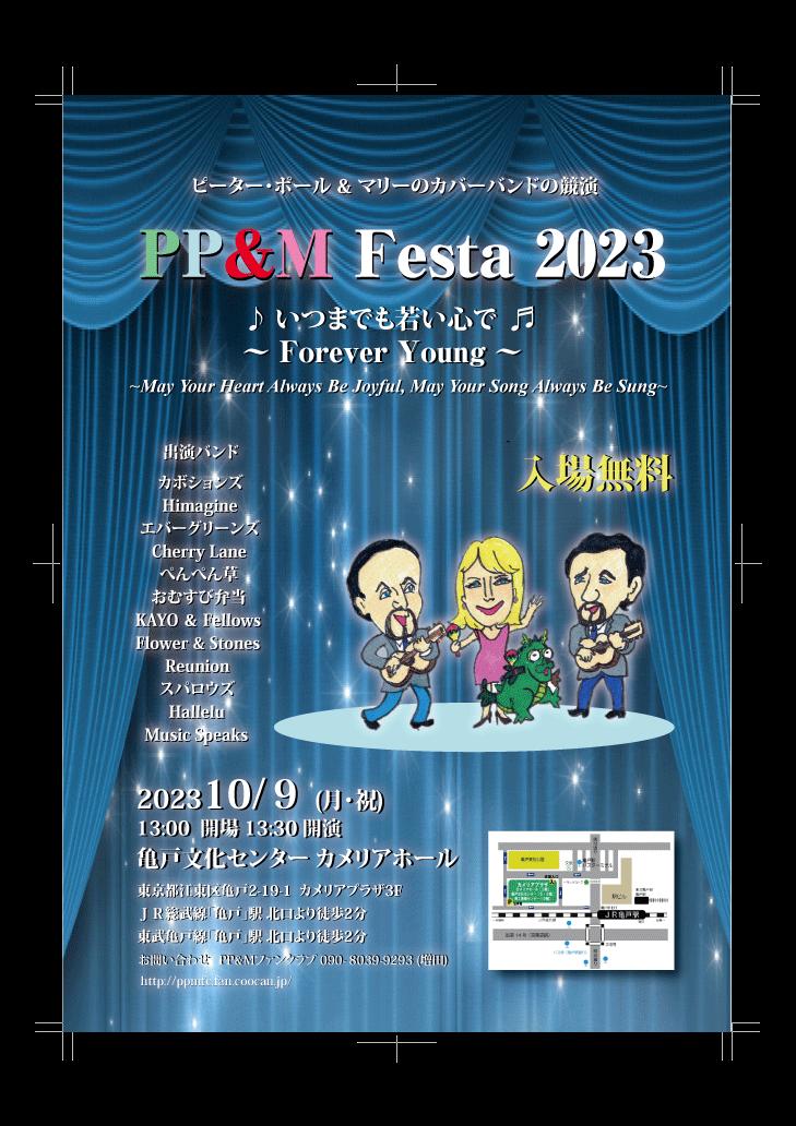 さて、今年もPP&Mフェスタが開催されます。わがバンド「CARRY ON」は出演しませんが、入場無料ですので、午後のひと時、PP&M(ピーター、ポール&マリ)のカバーバンドの競演に酔いしれてください。