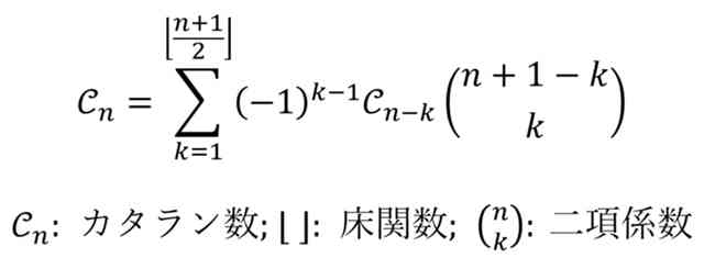 式の意味を無視して式変形でやるなら、カタラン数も二項係数も階乗に直す方針になるんでしょうか?