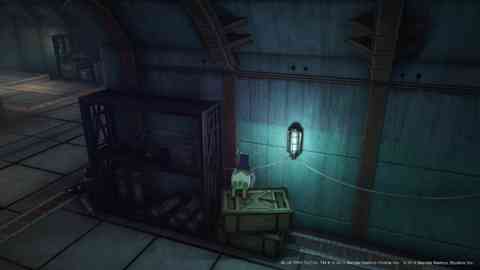 ・その状態でマウントキーを押すと壁上にのぼれるので、少し前進して右回転し、