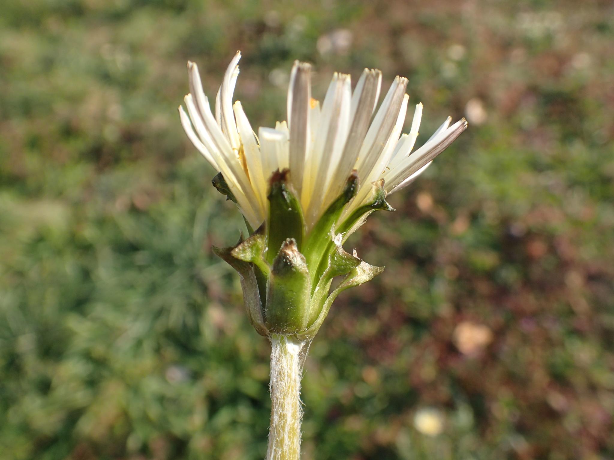 以前にも書きましたが、開花の初めころにはこのような形態のシロバナタンポポが多いとみています。