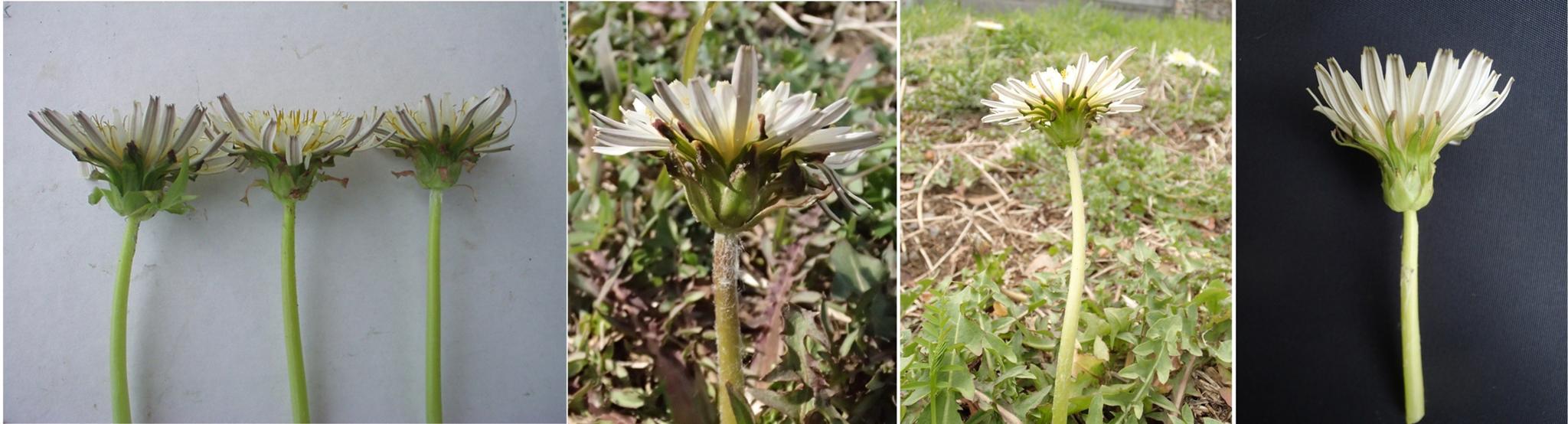 単一クローンと言われながら場所や開花期によってこんなに違います。シロバナタンポポも詳しく観察してみると面白いです。