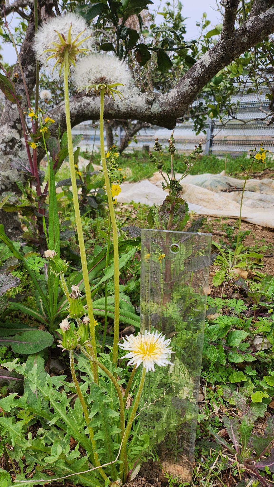 タンポポを調査していると、花が終わり種になると花茎がグンと伸びるのが分かります。先日行った大月町のタンポポの花茎は70cmくらい伸びていました。