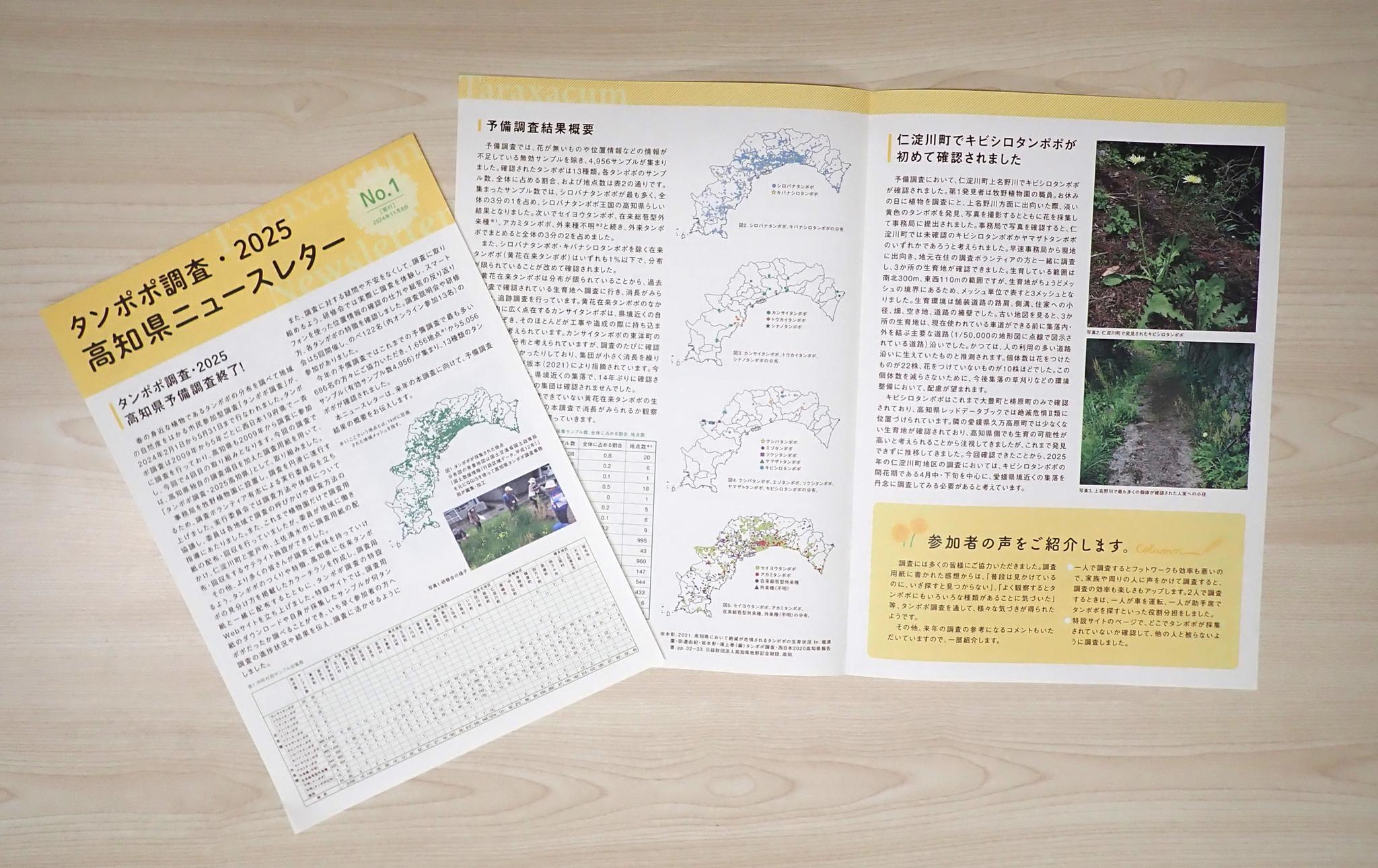 遅くなりましたが、予備調査の結果を簡単にまとめたニュースレターを発行し、タンポポの特設サイトに掲載しましたので、ご覧ください。