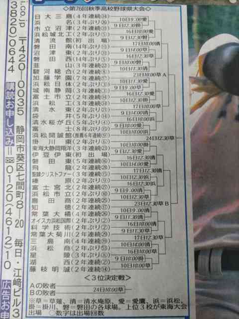 第75回秋季東海地区高等学校野球静岡県西部地区予選