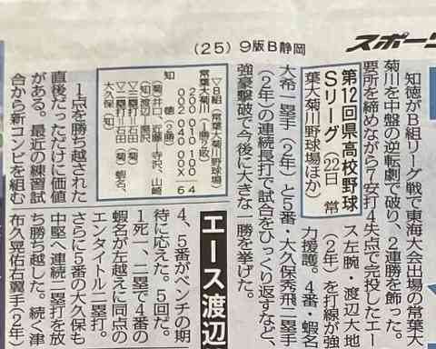 スポニチ(静岡) 常葉大菊川・安西叶翔の記事掲載!!