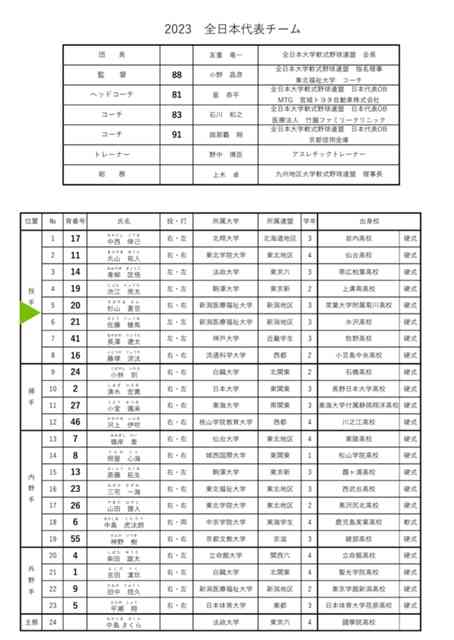 2023年度 大学軟式野球日本代表