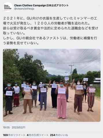 ファーストリテイリング(UNIQLO/GU)柳井正は、解雇したミャンマー労働者1200人に不払い賃金と退職金を支払え‼