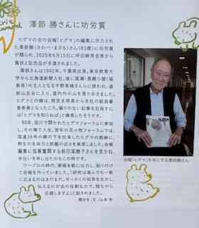 当会のメンバーで北海道新聞に勤務していた澤部勝さん(1961年経済)ですが、1998年、旭川で開かれたヒグマの会のフォーラムに参加し、その場で入会、その後、会報「ヒグマ」の編集に尽力されたことに関連し、2025年6月15日、坪田敏男会長(北海道大学教授)から功労賞が授与されたとのことなので、お知らせします。(画像は「ヒグマの会会報」)