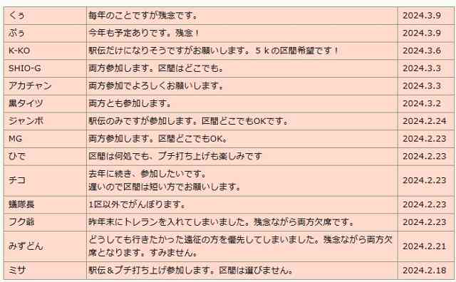 ふれあい赤羽駅伝 出欠記入Ⅱ 控えその1