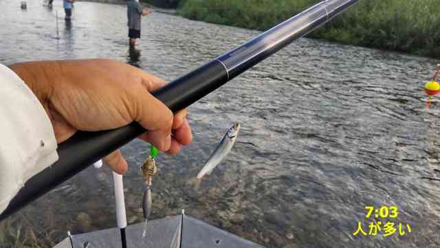 釣り人5人くらいと情報交換すると、湖東河川はどこも、人だけ多くて、ボウズの人も多い。魚影は見えないし、いても食って来ない。私の釣った河川も、早朝は食って来たが、6時以降ピタっと止まった。北も西も東も、河川は似たような感じだと思う。絶対数が少ないので、コアユ的には然るべき時(継続的な大雨などでの増水)を待って遡上したいのかも。降水がここ数週間の天気予報では見込めないので、今後のコアユ川釣りは厳しいものになるかも。7月には例年、けったいな大雨が続く事もあるから、それまでは難しいかも。厳しい状況→釣り人激減→こういう状況でも釣果を何とかして引っ張り出す! これもまた面白いと思う。暑いけど足を水に浸ければ足元はヒンヤリして涼をとれるのでこれも楽しい。でも熱中症には気を付ける事!