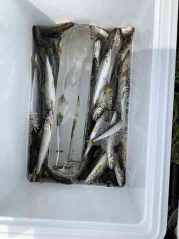 本日3時に起きて石田川へ、昼から雨予報だったので人少ないかと思い行ったが結構な人6時に開始パラパラ釣れる🎵150匹釣れたので10時に上がり!