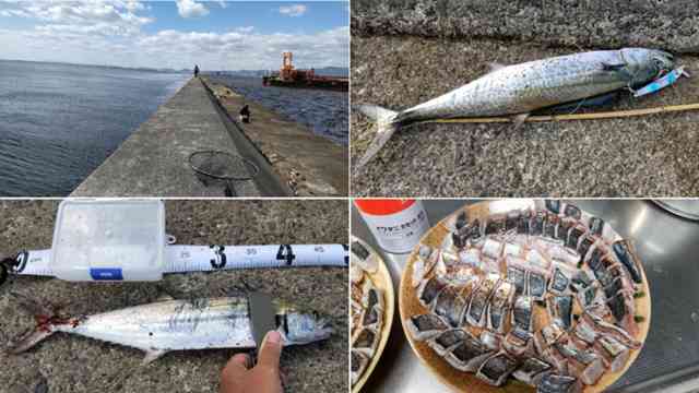 開始早々ゴツイ当たりもPE切れ。1日で2回PE高切れした。FGノット2回し直し(涙)。周りも余り釣れている感じがなかった。ムコイチの釣果情報も、良いのしか載ってないが、大体は貧果に終わってる感触。朝1時についたが駐車場開場(4時)待ちの車が80-90台と異様な混雑。でもあまり釣れないので、殆どが午前中で帰っていった。最後まで残っているのは好き者ばかり。ワシは合間に塩アサリでカワハギも狙ったが無反応。まあサゴシ3匹と激闘できて、炙り刺身も死ぬ程作れて、まだ食いきれなくて、幸せです。あまった刺身は食べ飽きて、今は海鮮丼で楽しんでます。秋のサゴシも美味いよ~!アラの塩焼きも激ウマです。(注意:現在全日6時迄の来場はネット予約制。休日は会員のみ可)