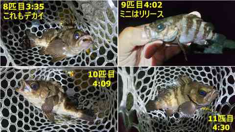 ■釣果:メバル11匹(20cm級3匹、15cm級7匹、リリース10cm級1匹)