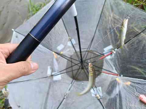 釣り開始してから1投目で15cmぐらいのふっくら小鮎がヒット‼︎