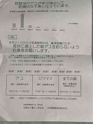 滋賀県様、漁協様も色々と対策をされている様子ですので、来シーズンが良くなるように願って待ちましょう。