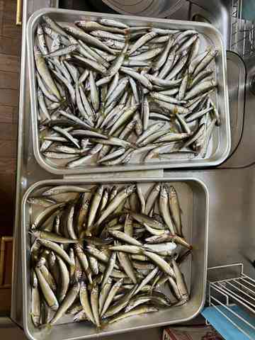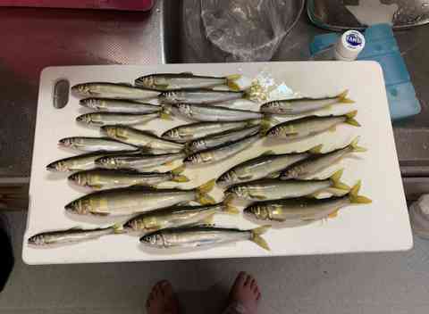 「あかん、こんだけや」で、大きなタライの中は20匹ほどの小鮎たち。