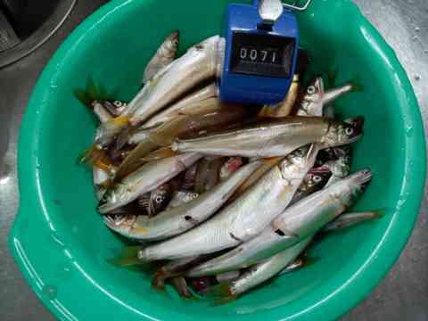 1投目からよく掛かり釣れ止まない。10:50~14:40の4時間弱で267匹でした。