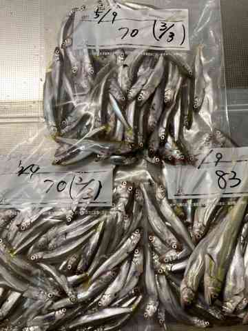 几帳面に70/70/83匹と3袋にまとめて~、エエ感じですねえ。料理用に分けたのかな。