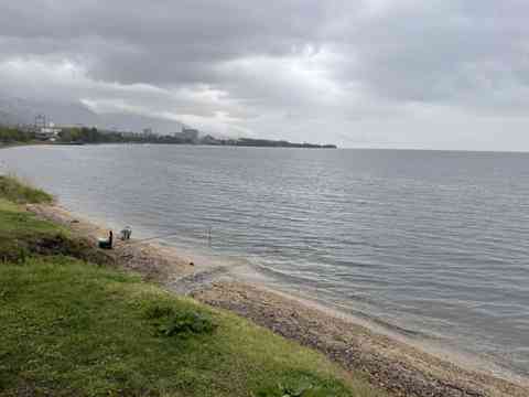 文化館西側もよく釣れていたらしいです。しかし一番いいのはプリンス前だそう。この時期になると、におの浜あちこちで釣れるので、釣り場が分かれ、比較的空いています。