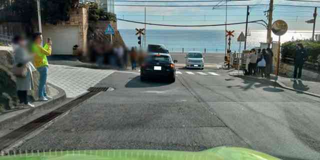 江ノ電の踏切で皆さん『スラダン撮影会』!!