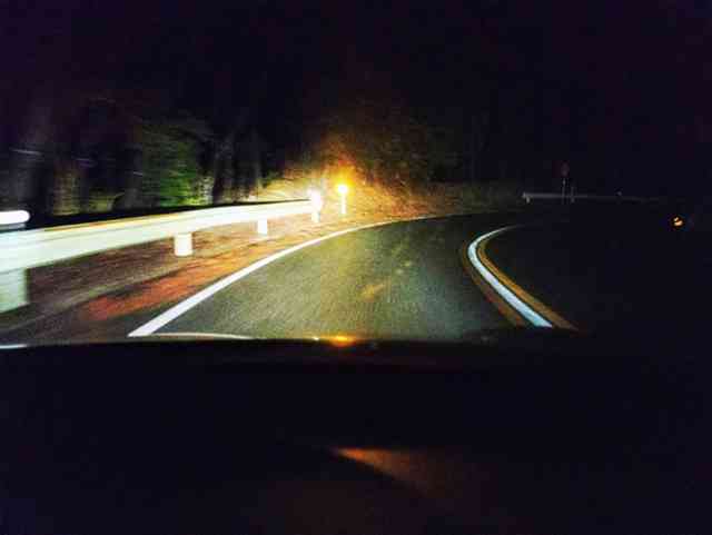 所々凍ってる、帰りの下りコーナーは