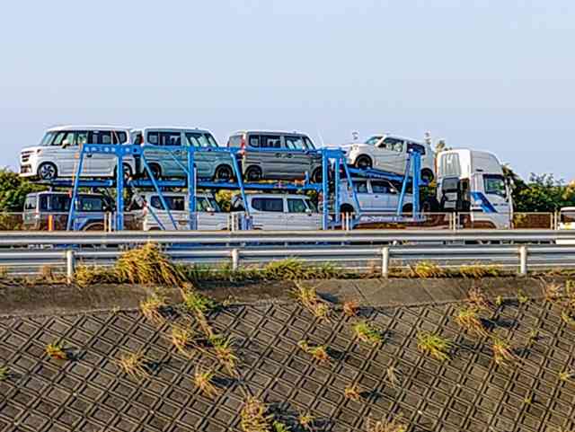 ウォーキング中に浜名バイパスをキャリアカーに