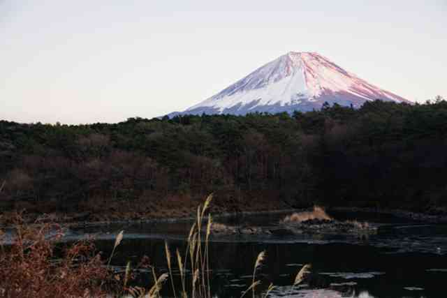 氷が張った『精進湖』と【富士山】!!