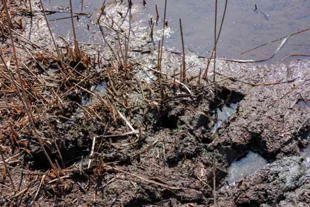 粘度が高くズブズブと沈む池の泥は足を取られ転倒する危険性も…