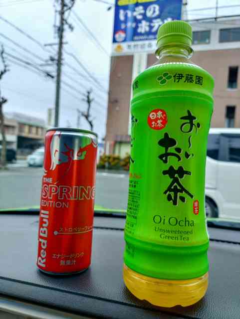 旅のお供にファミマで『RedBull&お〜いお茶』調達♪