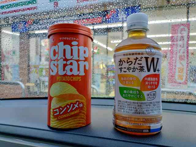 近くのセブンで食後の『すこやか茶&チップスター』調達♪