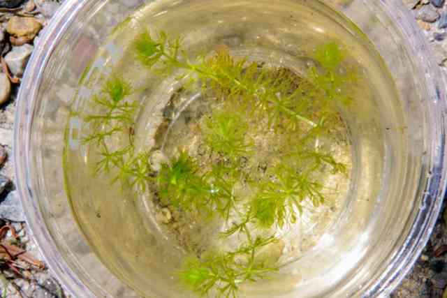 長靴の限界水深度を超えた先の水草を掬い上げて