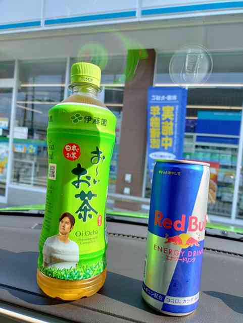 近所のファミマで、旅のお供に『RedBull&お〜いお茶』調達♪