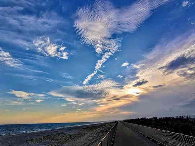 防潮堤の横を風上に向かって『アカトンボ』が無限に