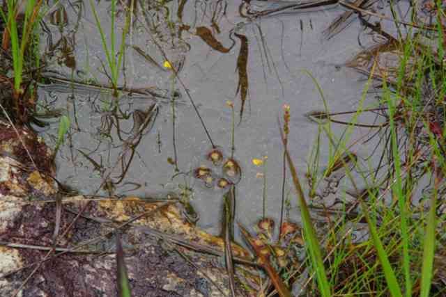 湿原のあちこちに自生する『コタヌキモ』、捕虫嚢は地下茎に