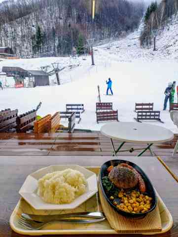 ヒルメシは『鉱泉ヒュッテ』で『ハンバーグ』を!!