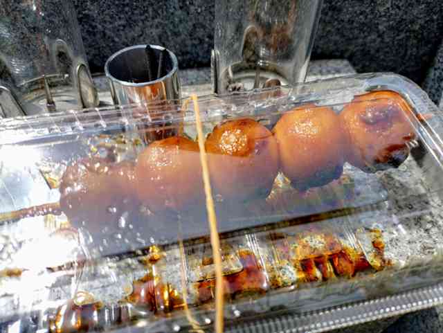 オヤジの好物の『名古屋風みたらし団子』をお供えした後、自ら食べる!!置いとくとカラスが来ますからね♪