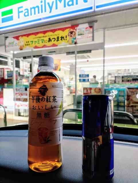 ファミマで旅のお供に『Red Bull&午後ティー』調達♪